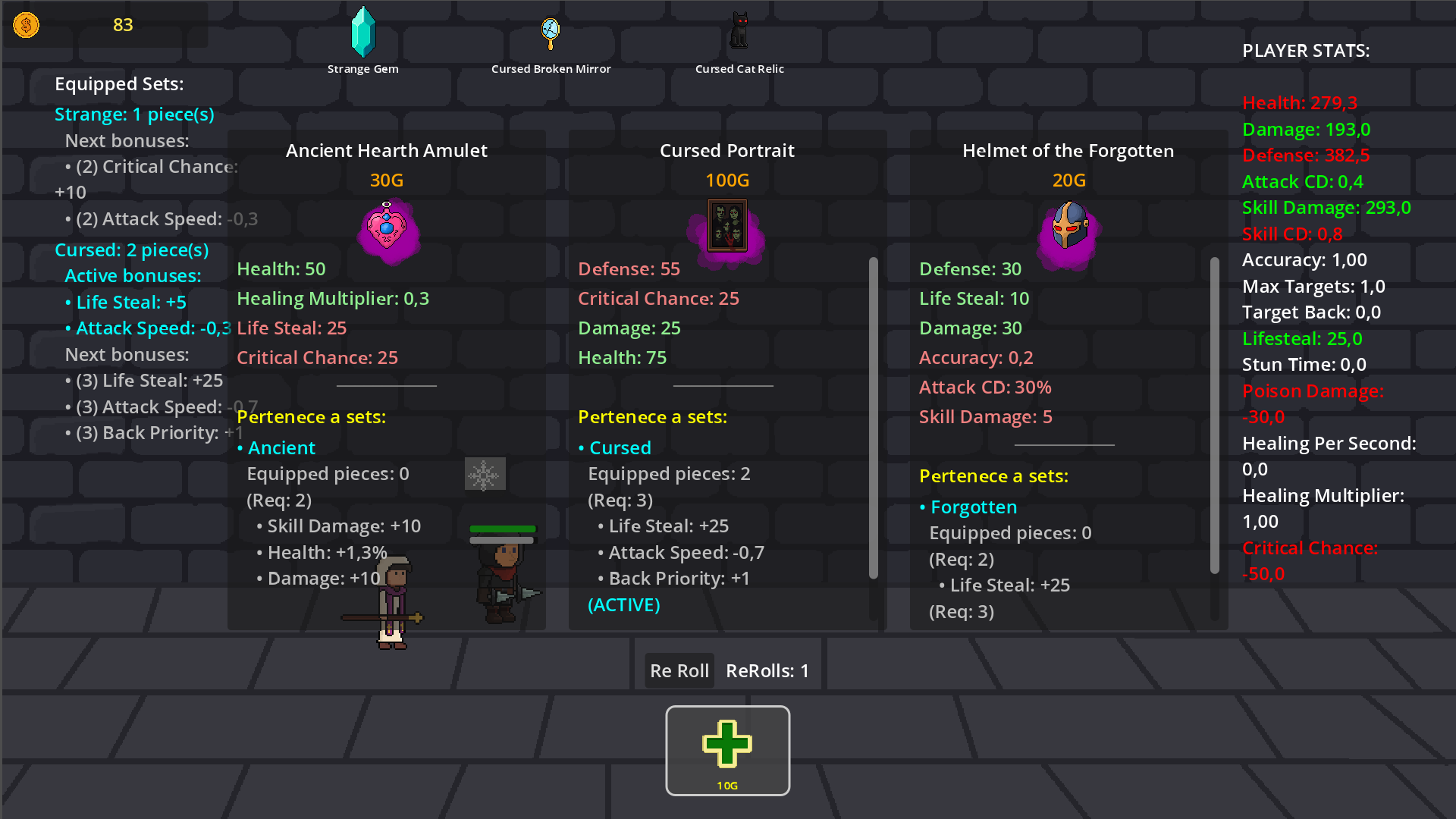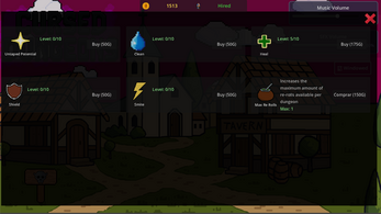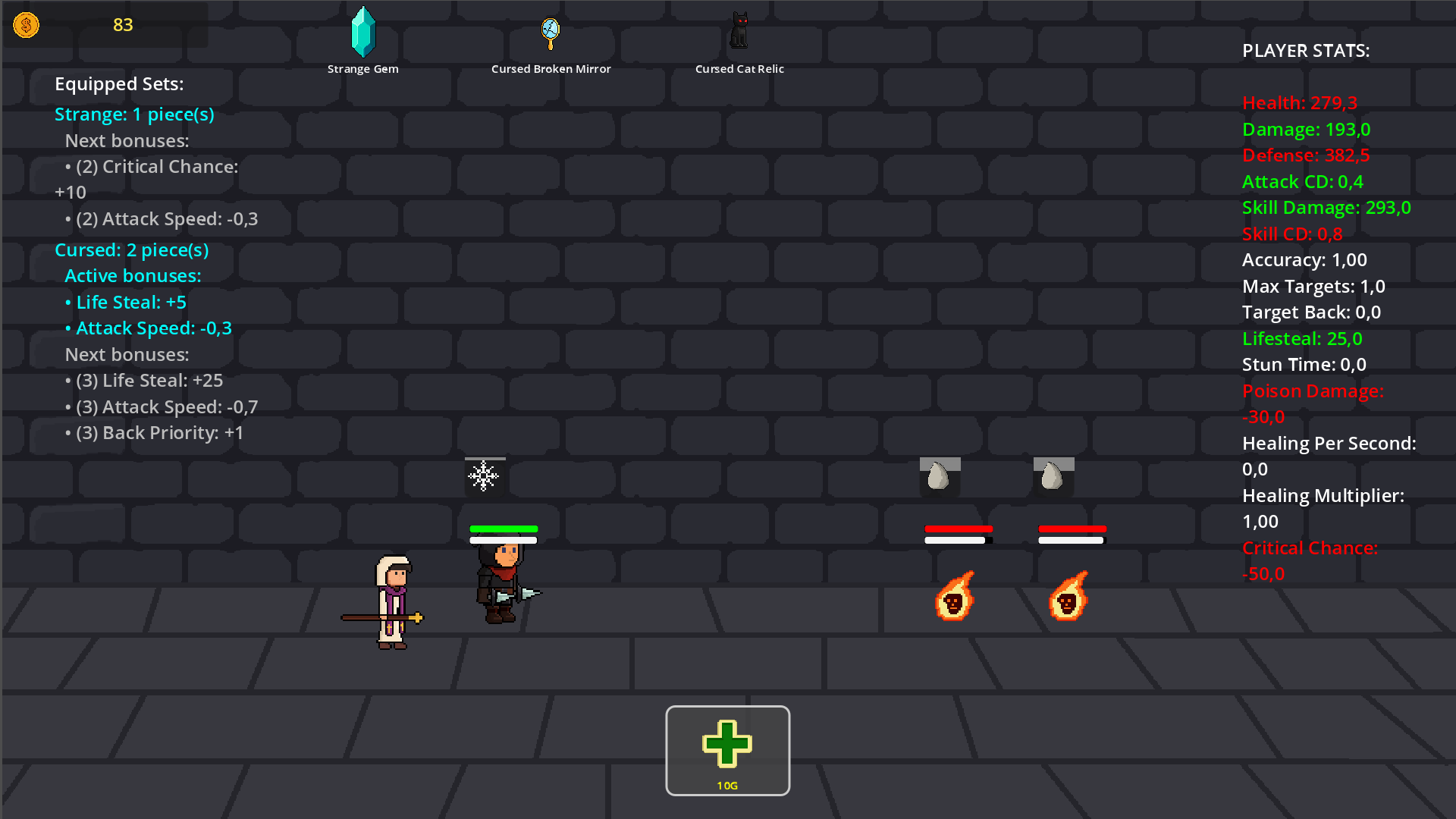 You are a cleric venturing into a dungeon aided by mercenaries, where the equipment they use is always cursed, which presents risks and opportunities. Each time you complete a dungeon level, you earn gold from the equipment you acquire, which can be invested in improving your skills or hiring stronger mercenaries. Upon clearing level 20 of a dungeon, you unlock access to new dungeons with stronger enemies and new abilities.